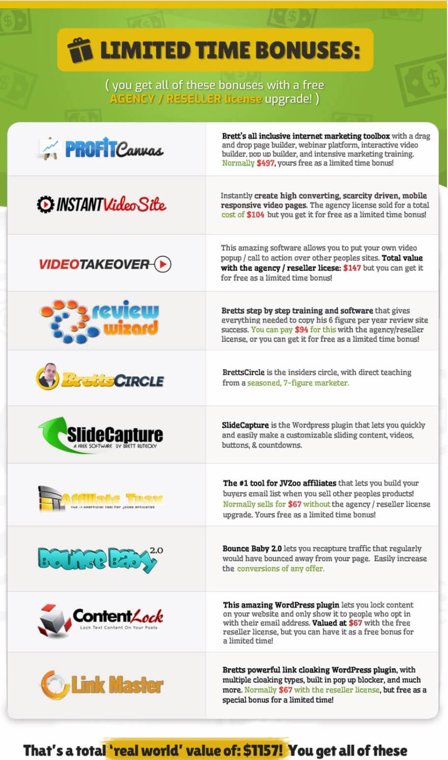 Everyone who buys Vidyz from anyone will receive these bonuses in the members area, but these bonuses won’t be advertised on their sales page.